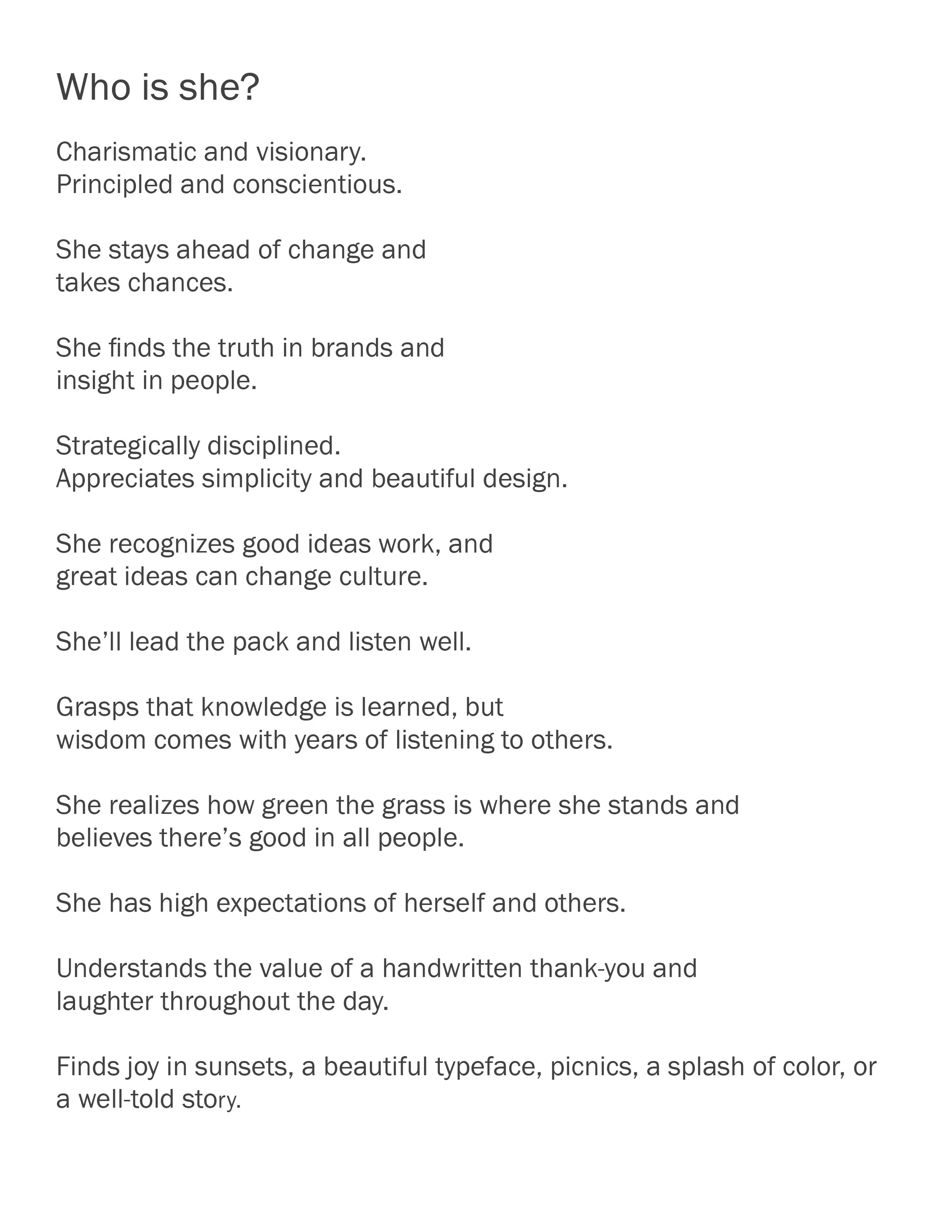 Jeannie Richardson is a creative leader and has been building brands for blue chip and small companies for many years. Her work has been awarded repeatedly, both on the creative and business side. Her passion for design excellence, big thinking, and innovative ideas, along with her business savvy make for memorable advertising with proven results. She believes in a collaborative approach, which inspires creativity within her team. She’s a problem solver by nature, whose curiosity and desire to find the truth in brands fuels great storytelling.